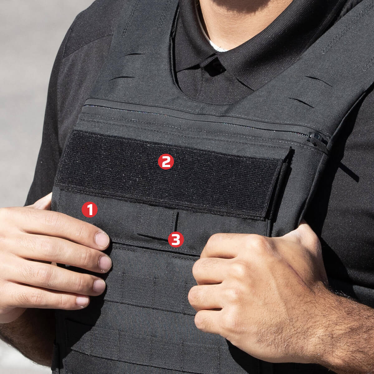 2. Velcro Patch: Fits Unity Nametag and ID Patches, velcro area is scaled by vest size.